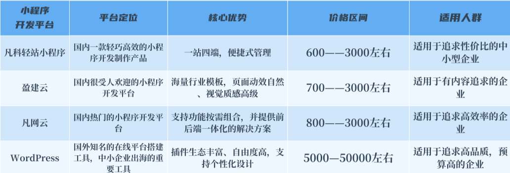 从上面的对比不难看出,国产小程序开发平台在性价比方面具有明显优势。