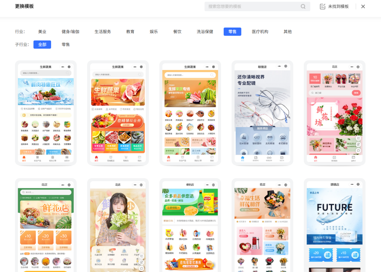 第一步:先注册平台账号,进入模板库挑选一款符合自身行业需求、贴合门店形象的模板的模板,点击一键套用。
