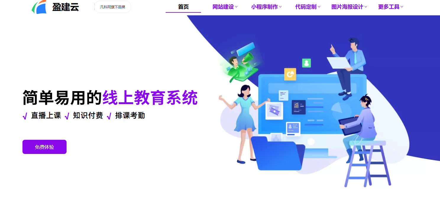 盈建云是国内热门互联网搭建服务平台,为企业提供线上平台搭建、后台教学管理、营销推广和数据运营等全包服务,不需要再额外接入其他系统,让企业更省心省力,适用于缺乏技术团队的教育企业,2000——4000元左右就能得到一站式技术服务。