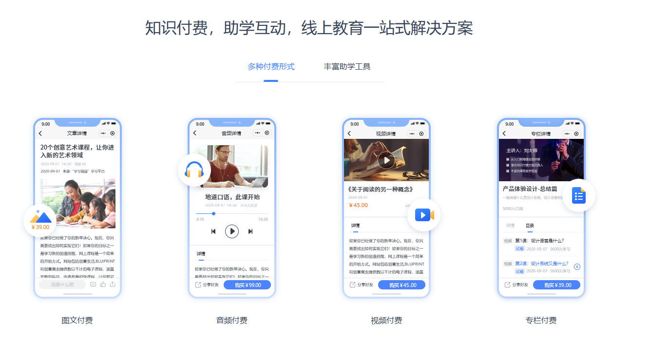 优势:提供线上平台搭建、后台教学管理、营销推广、数据运营全流程全包服务,无需额外接入其他任何系统,不用费心对接多个渠道,真正做到省心又省力,一站式解决企业线上运营的各类需求。