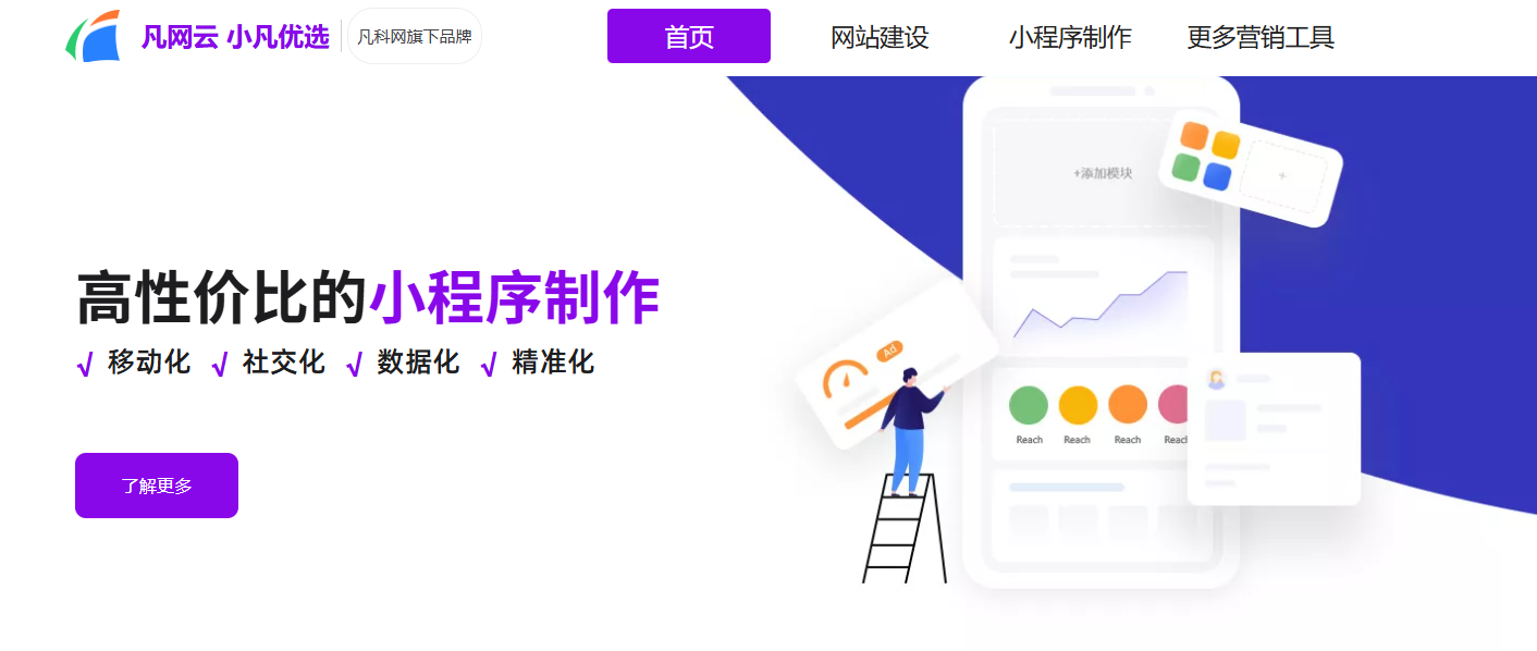 凡科轻站小程序是面向同城本地中小型企业的专属小程序制作平台,助力同城企业实现线上交易、本地引流与移动端推广营销,精准对接同城客户需求,深耕本地市场。平台支持六合一多平台展示,一键发布微信、抖音、百度、头条、快手、支付宝小程序,多渠道抢占同城流量红利,满足同城企业多样化获客需求,轻松触达周边潜在客户。