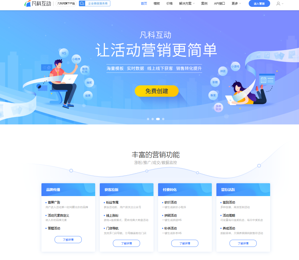 优势:有多年营销互动设计经验,专业性可靠性强,能为不同行业的商家按需匹配营销活动的小程序制作模板。配备在线客服解答商家技术问题、运营问题。