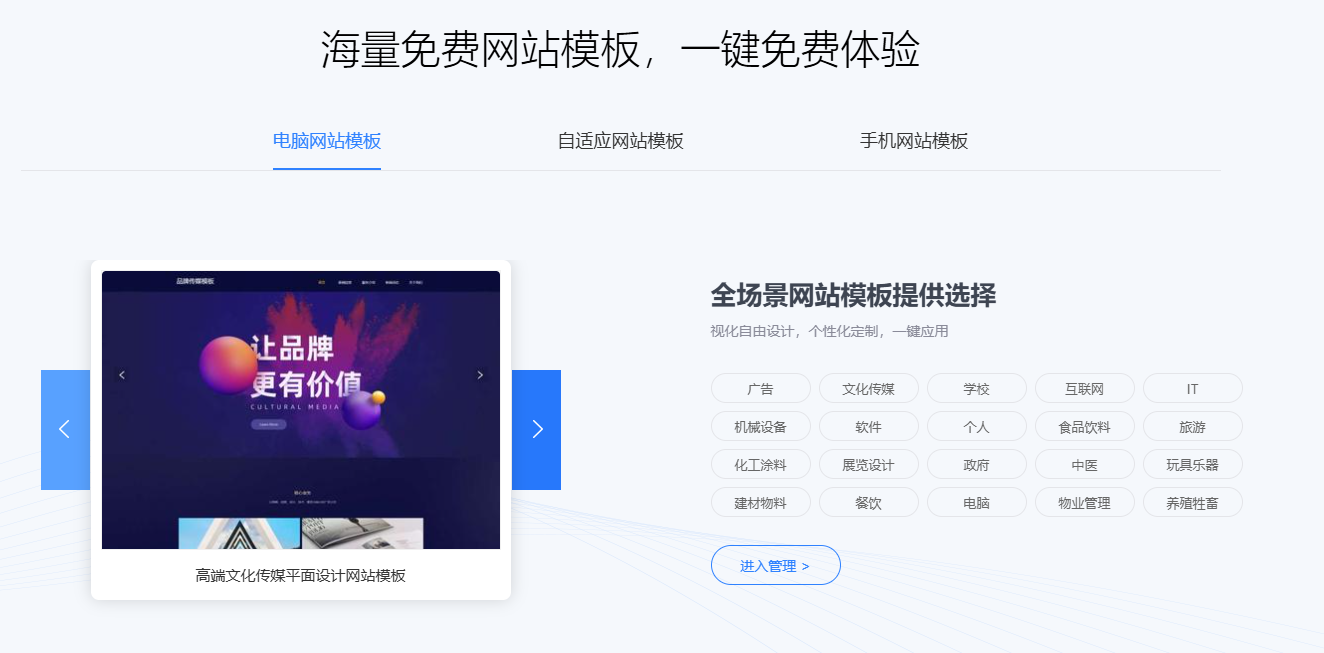 优势:背靠上市公司实力背书,安全靠谱,拥多项自研核心技术专利,硬核技术壁垒筑牢使用保障。平台提供网站搭建+日常运维管理全包托管服务,全程省心省时。无需编写任何代码,依托海量精品模板即可一键套用,打破传统建站技术门槛,就算是零基础新手也能快速高效搭建专属优质网站。