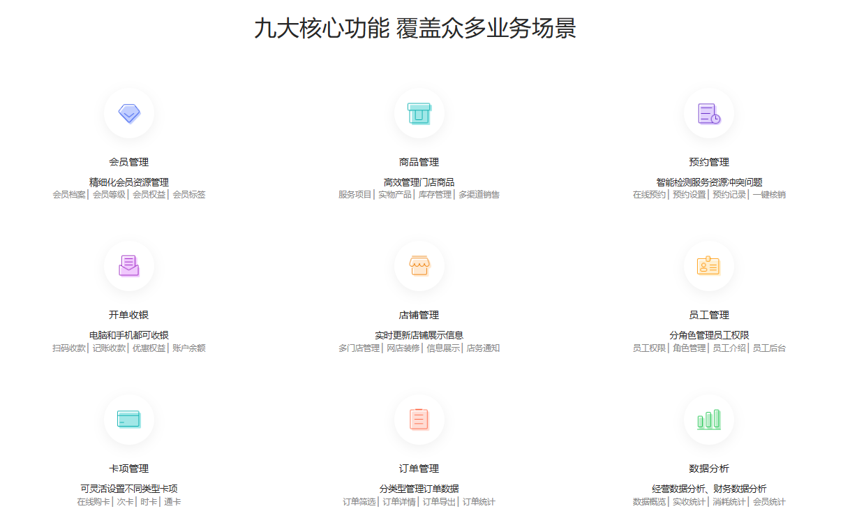 凡科门店通是国内高人气、口碑良好,拥有千万用户的一款门店管理系统,为门店体提供线上小程序+线下实体店的一站式行管理运营服务,能成为你的门店管理“数字管家”,让门店经营更智能更简单。这个软件拥有四大智能系统,涵括智能化门店管理、全渠道营销拓客、全方位数据分析和数字化运营模式,有效帮助线下门店数字化转型,不仅能高效管理门店还能实现引流拉新提高门店曝光度。拥有会员管理、商品管理、预约管理等九大核心功能,涵盖众多业务场景,满足门店经营管理的多样化需求,让店铺的管理更高效有逻辑,还能让门店的服务体验升级!
