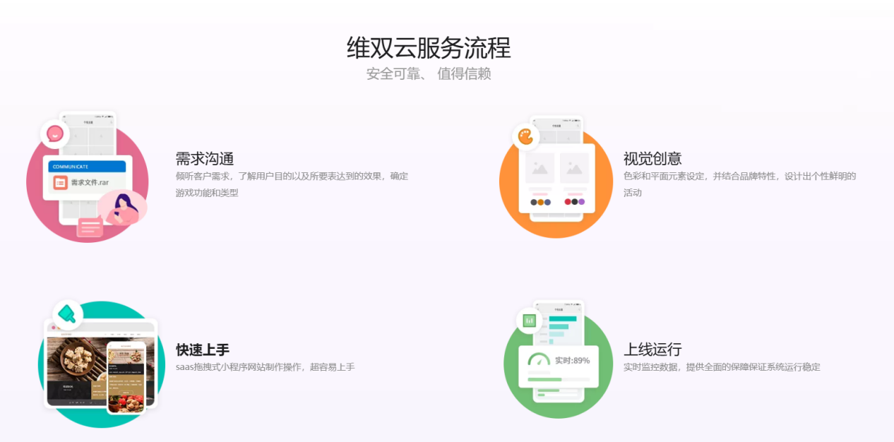 亮点:从网站搭建到后台管理全流程覆盖,拥有24小时在线客服为你答疑解惑提供使用指引,还配备安全维稳监控,让建站更省心安心
