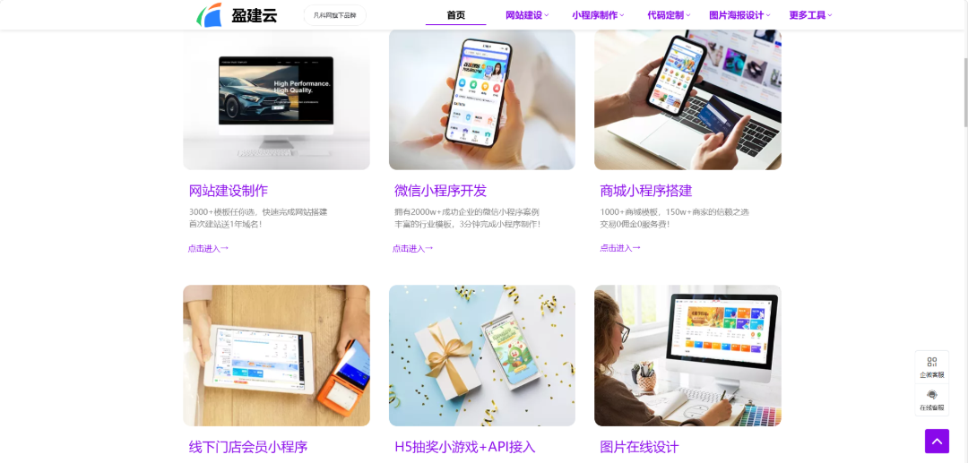 如果你的目标是品牌认知、信任构建,那盈建云将会是一个不错的选择,适用于B2B、高端服务、设计创意等行业。