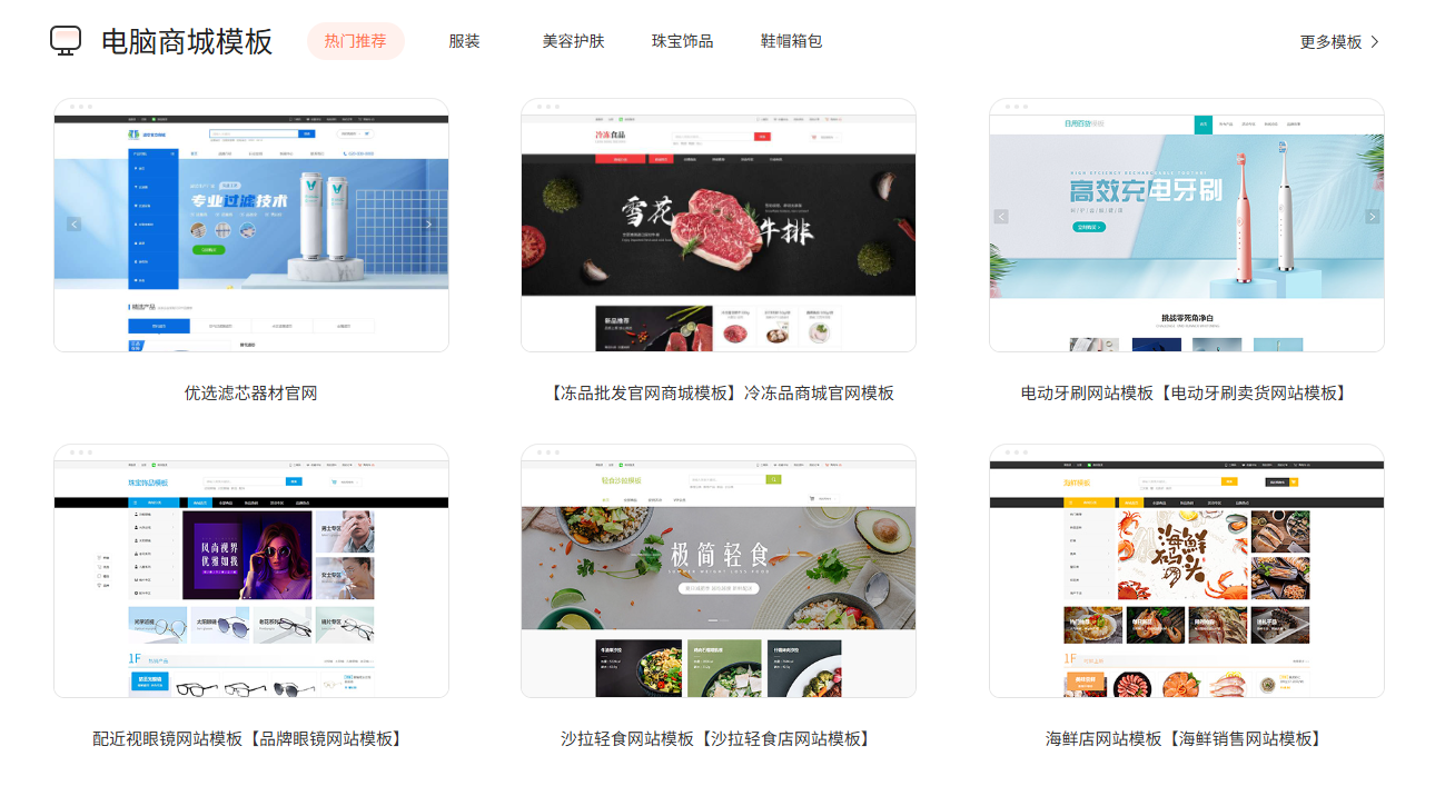 亮点:不需要有任何的代码基础,也不用学习复杂技术,平台内置海量精美细致的商城网站模板,覆盖服装、美业、箱包等多种行业需求,只需要一键套用模板就能快速搭建商城网站,降低搭建时间和技术成本。
