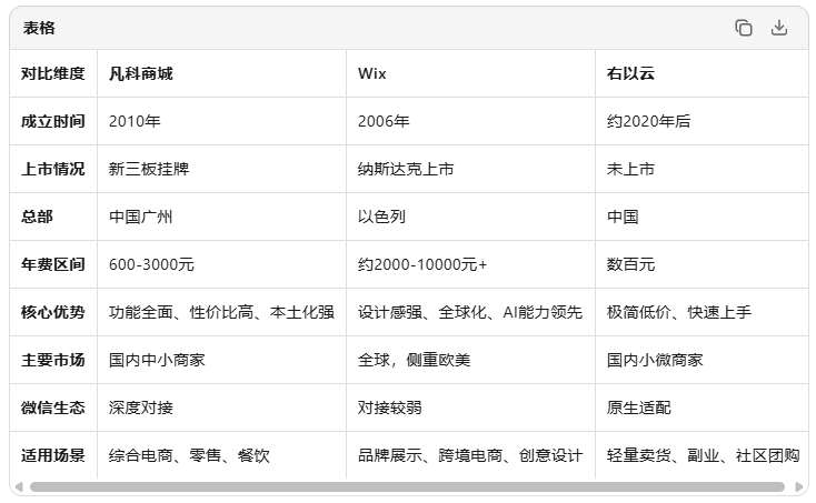 一句话总结,做国内大众市场选凡科商城,搞品牌调性或跨境Wix,预算有限想快速试错就用右以云。每个平台的来头、底细、适合谁、不适合谁,看完你心里就有数了。