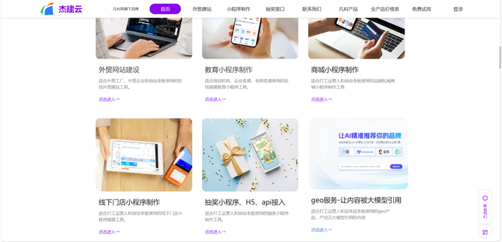 杰建云提供“全权委托”与“自主服务”两大选择。可以选择前者适合缺乏内部优化团队的企业,由平台直接负责内容生产与分发;后者则为企业提供GEO监测工具,由内部人员按指引操作。其特点在于强调内容质量与搜索流量的协同——不仅关注AI问答中的引用排名,同时兼顾传统搜索引擎的收录表现。对于刚接触GEO、预算有限的中小企业,可以先用自主服务模式低成本测试效果。