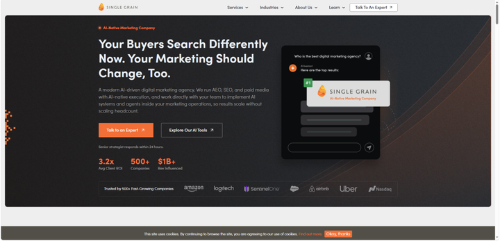 Single Grain专注于增长阶段的B2B企业,尤其服务于SaaS、电商等领域。其团队擅长分析特定行业内的常见问题与争议性话题,围绕这些问题创作具有数据支撑、案例详实的内容,从而提高被AI模型引用的概率。不过,其服务价格区间相对偏高,更适合已有稳定内容团队、需要外部策略支持的成长型企业。
