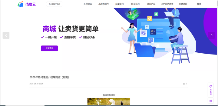 杰建云同样能一次制作多端上线,有助于拓展多个流量入口。后台操作较为直观,内置新人有礼、优惠券、直播等营销工具,帮助获取新用户。价格大致在2000-3000元/年,适合希望低成本试水多平台运营的商家。