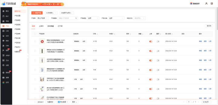 进入后台“产品”管理模块,点击“添加产品”,依次输入产品名称、价格、库存等基本信息,并上传产品图片。也能通过批量导入的方式上传,在此界面商家还可以对商品进行精细化分类管理。