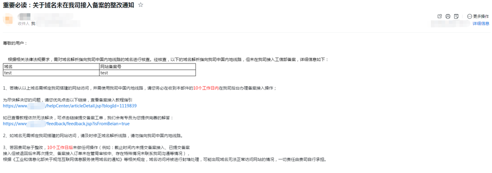 情况一:如果域名已在我司备案,可能是由于域名解析错误导致收到本次整改通知