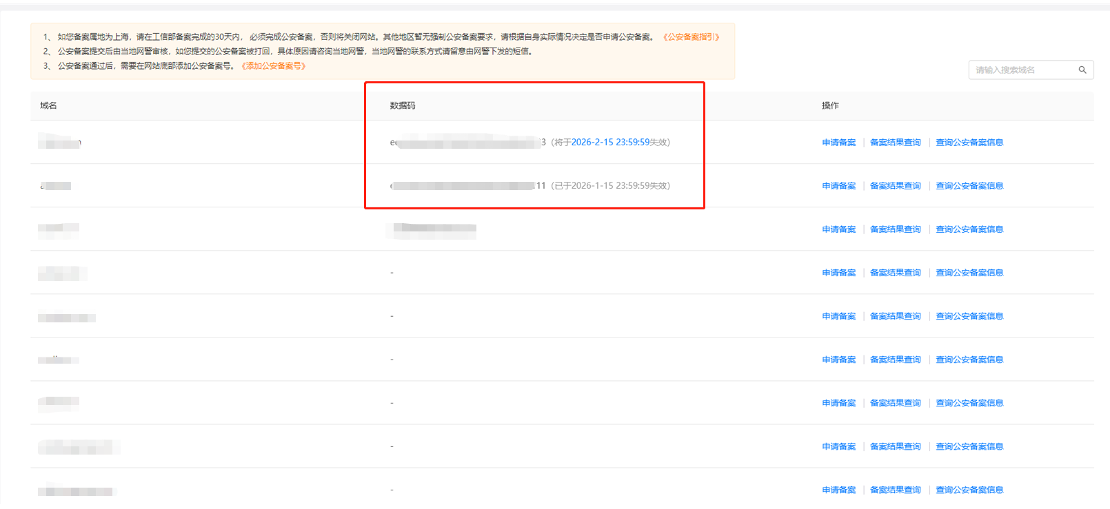 公安备案的数据码如何获取2026-02-12 16:32:10 数据码获取方式:在我司提交工信部备案资料时系统会弹窗提示是否授权,同意授权后,在工信部备案成功后,在我司公司备案信息查验界面会显示对应的授权码。数据码有效期为30天,30天后自动失效。操作界面如下: